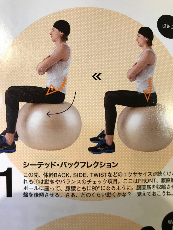 ボールを使う事で非常にスムーズに骨盤後傾にともなう脊柱の曲げ伸ばしができると思います。