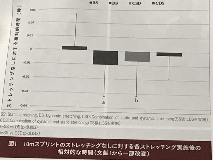 スタティックストレッチだけをしたグループはタイムが速くなるどころか遅くなっていることもわかりますね(^^)