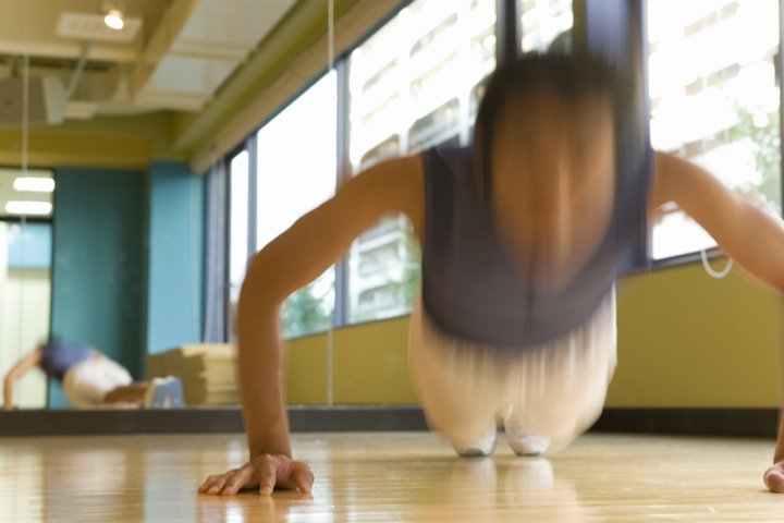 腕が床から離れない範囲で思い切り高速で行う腕立て伏せは、